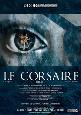 Bu akşam İstanbul Devlet Opera ve Balesince sahnelenen Korsan balesini seyrettik. Eser daha önce 1995 yılında Antalya devlet opera ve Balesince sahnelenmiş. Şimdi de İstanbul' da sahnelendi ve biz de ilk gösterisine bilet bulmayı başardık.